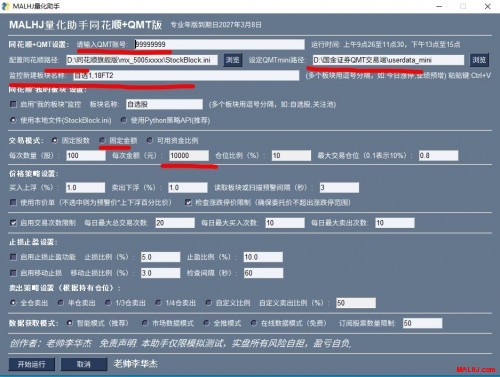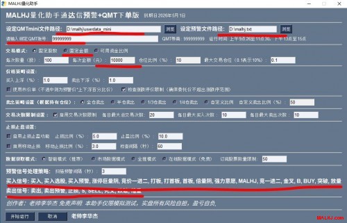 一.MALHJ助手专业同花顺版主要定制:(避免每次运行软件都得重新修改输入)